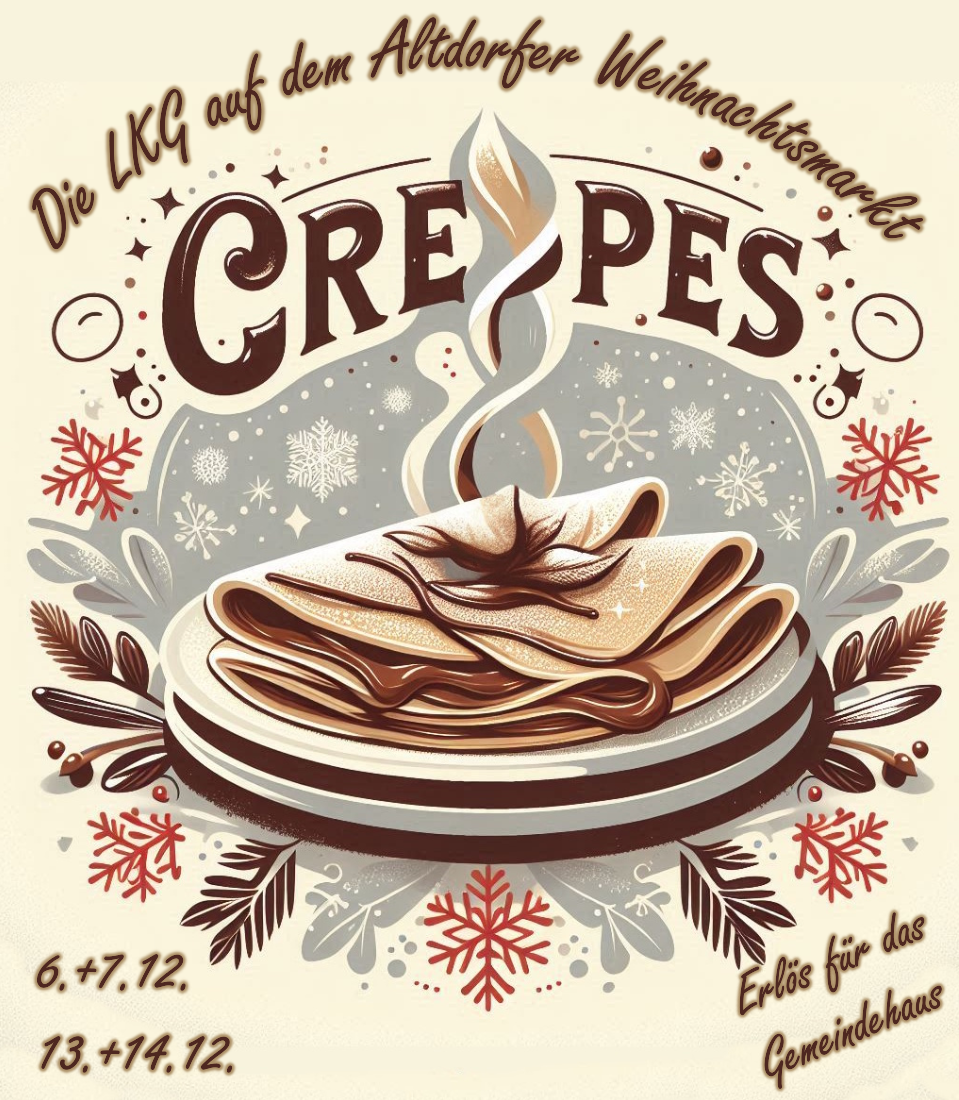 Wir bieten wieder große leckere mit Liebe gebackene Crêpes nach original französischem Rezept an. Dazu gibt es wahlweise fair gehandelte Nuss-Nougat-Creme, Zucker und Zimt oder auch Käse. Die muss man einfach probieren!