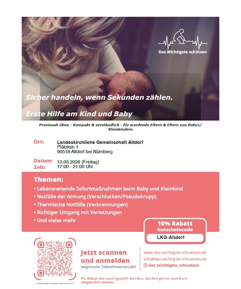 Dieser besondere Gottesdienst-Nachmittag für Kinder (bis ca. 12 Jahren) mit Ihren Eltern, Großeltern und Freunden findet von 15.30 Uhr bis ca. 17.15 Uhr im Evangelischen Haus am Schlossplatz 5 in Altdorf statt.